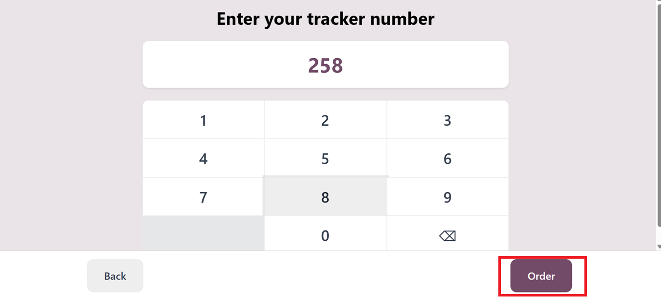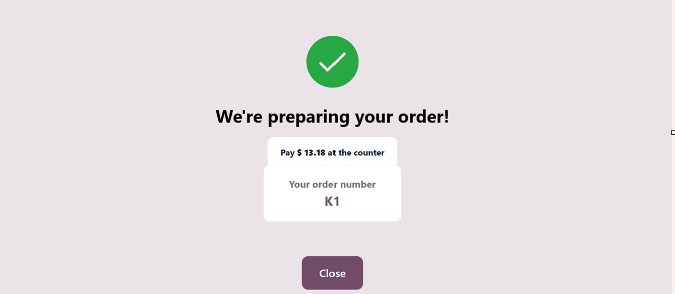 Finally, after the order is confirmed using the ‘Order’ button, an Order Number is generated for pickup at the counter, as illustrated in the screenshot below.