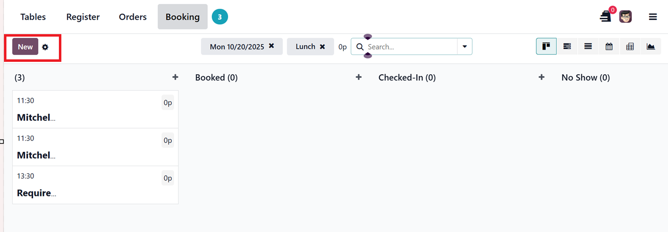 You can check the ‘Booking’ tab to manage the bookings or add a new booking as per the requirement. This tab will open the dashboard of the available booking in a kanban card, as shown in the screenshot.