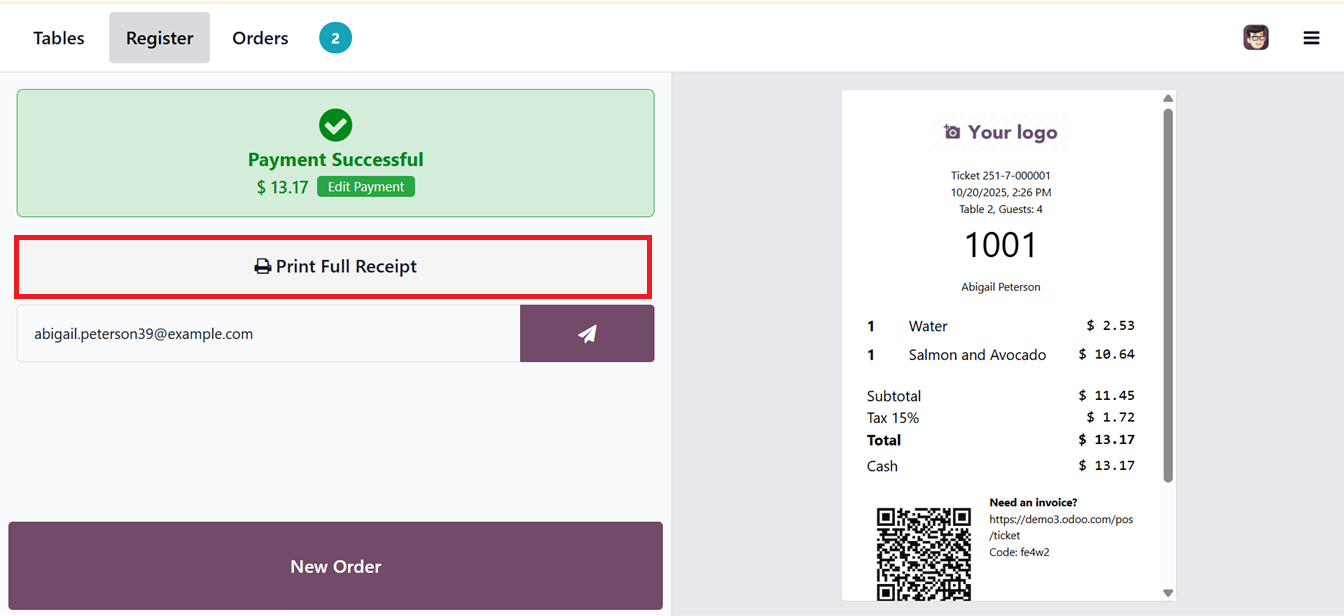 To start a new transaction, click ‘New Order’. Once all sales for the day are completed, end the session by selecting ‘Close Register’ from the POS terminal menu.