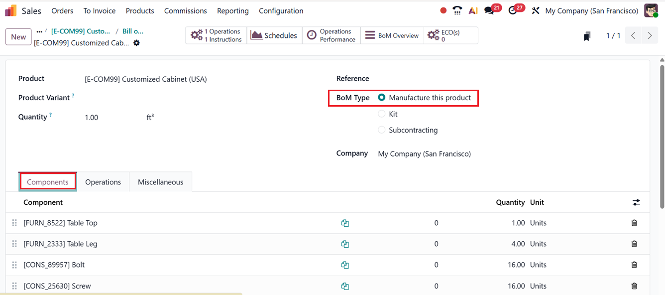 You can check more about creating BOM for a product through the Manufacturing Module. After saving, the newly created Bill of Materials is now visible in the smart tab, confirming that the product is ready for manufacturing through MTO.