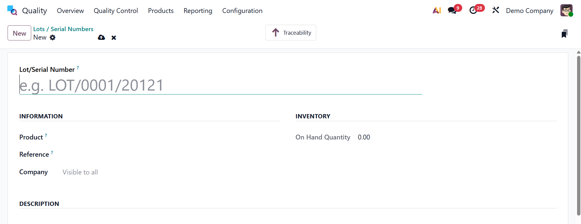 In the Description tab, you can also provide further details about product batches and serial numbers.
