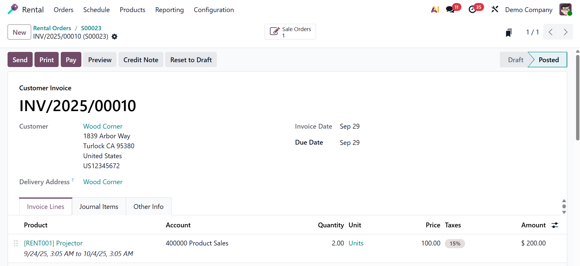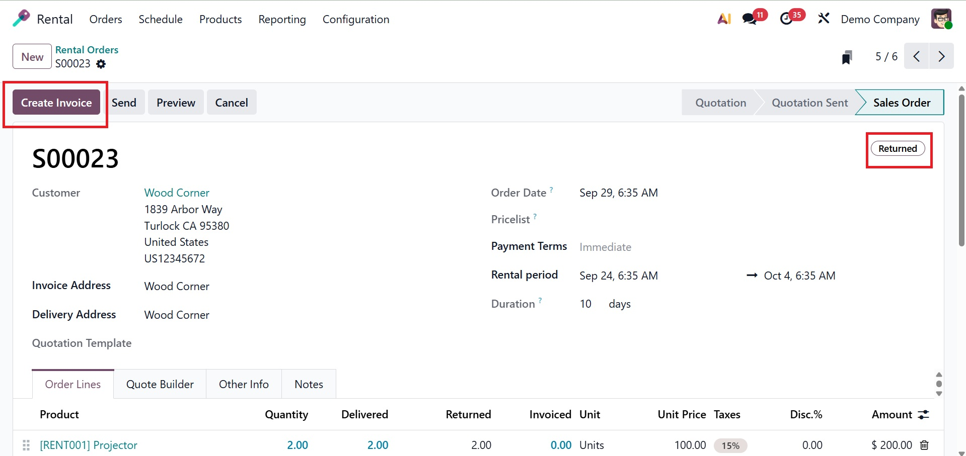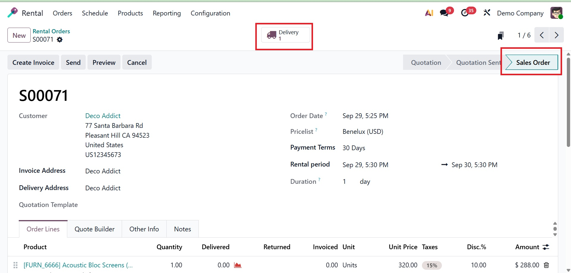 As shown in the above image, you can quickly select the Confirm option once you receive confirmation from a specific customer. The page shown in the screenshot below will appear after the rental item has been verified. Businesses can handle reservations more effectively and avoid duplicate bookings by doing this. The status indicated as Sales order is shown here.