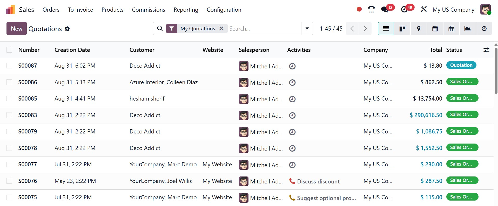 Businesses can employ the advanced sales management processes offered by Odoo 19's sales module. For efficient sales process administration, the Odoo 19 sales management solution is completely dependable. One way to improve workflow is to systematically arrange the creation of quotes, client management, sales team organization, sales order confirmation, invoice generation, and many other sales operations inside a company. It will be difficult to oversee and monitor all of these activities by hand.