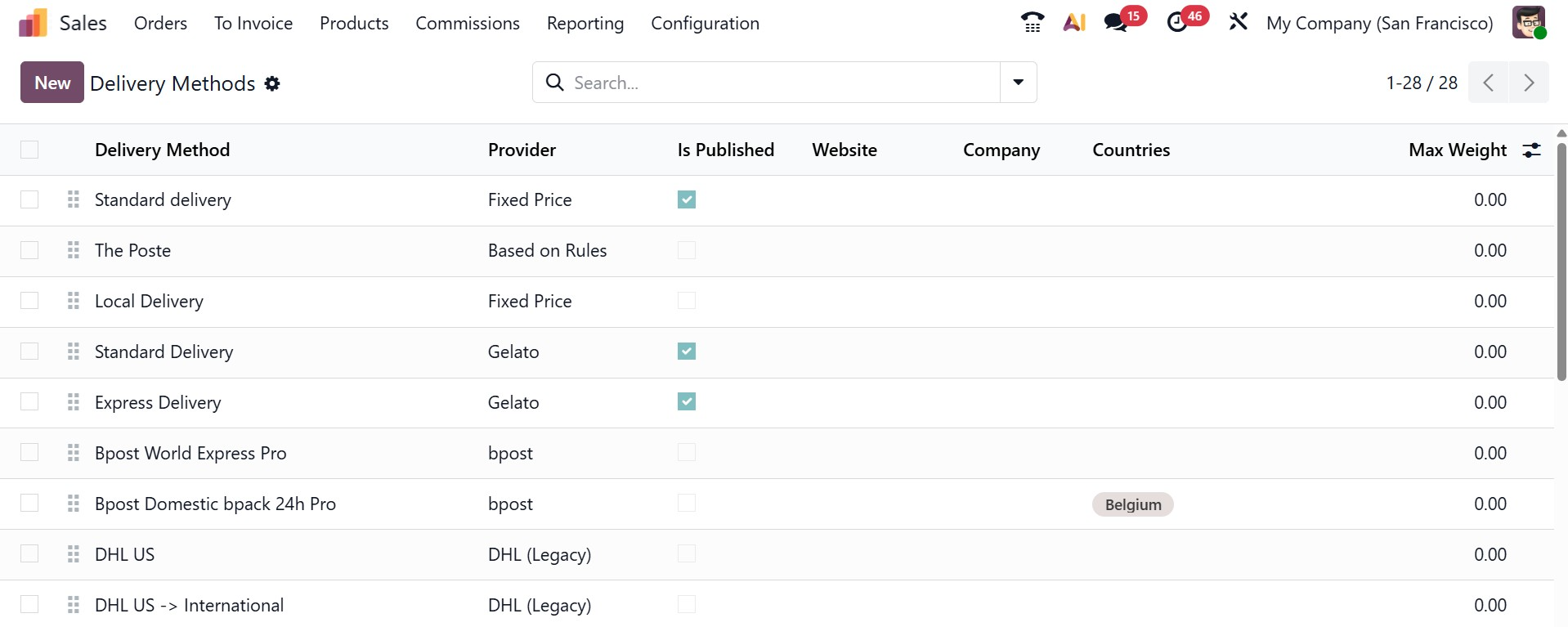 - Max Weight: The highest order weight that this delivery method is capable of supporting. This shipping option won't be available for bigger orders