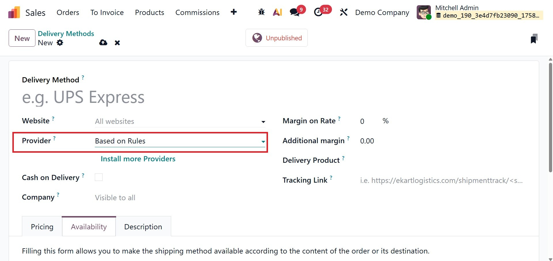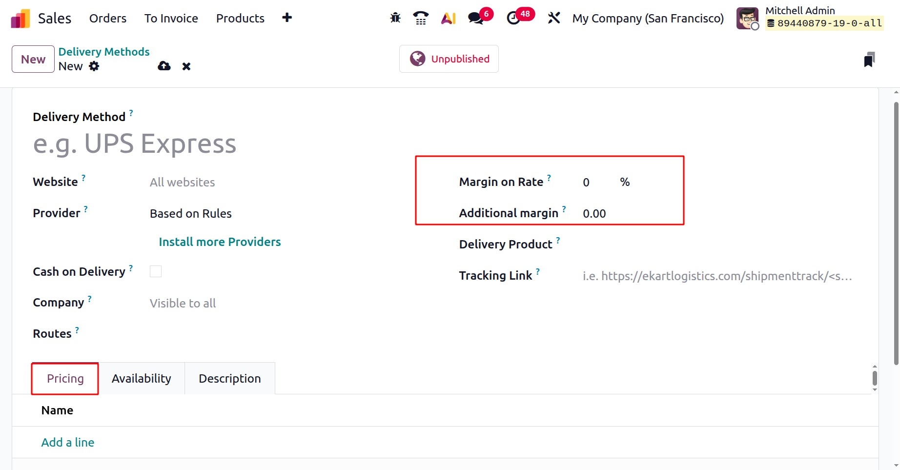 If the provider is set as based on rules, then, you can determine the delivery cost using pricing rules. You can choose to include additional shipping expenses by adjusting the Margin on Rate and Additional Margin, as in the screenshot below.