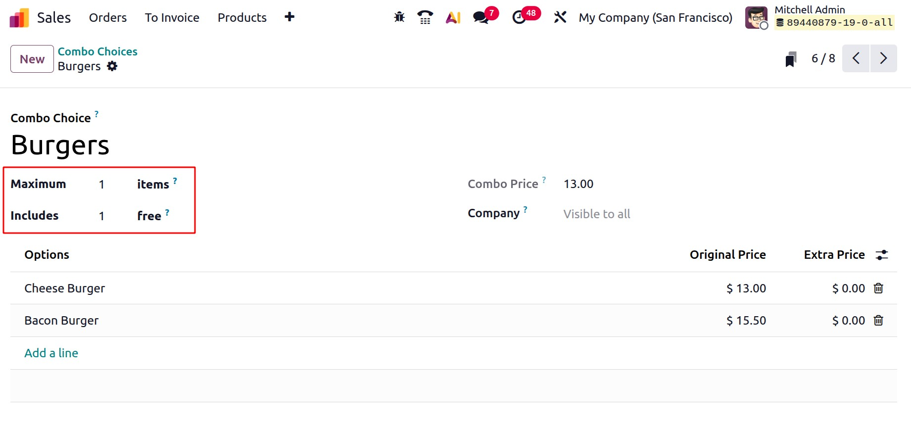 - Maximum: This determines how many things a consumer may choose from a combo option. For instance, the buyer can only select two products from that combo if the maximum is two.