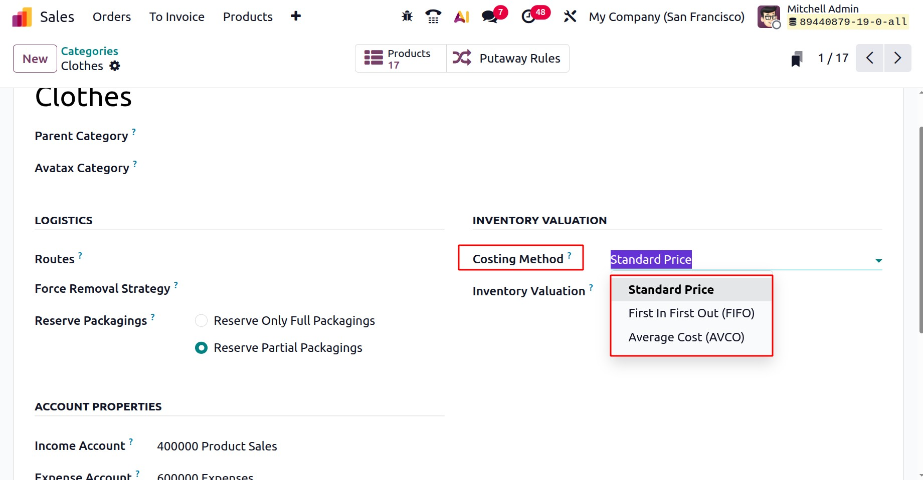 You can choose the Costing Method for this product category under the Inventory Valuation tab. The costing techniques that Odoo offers are: