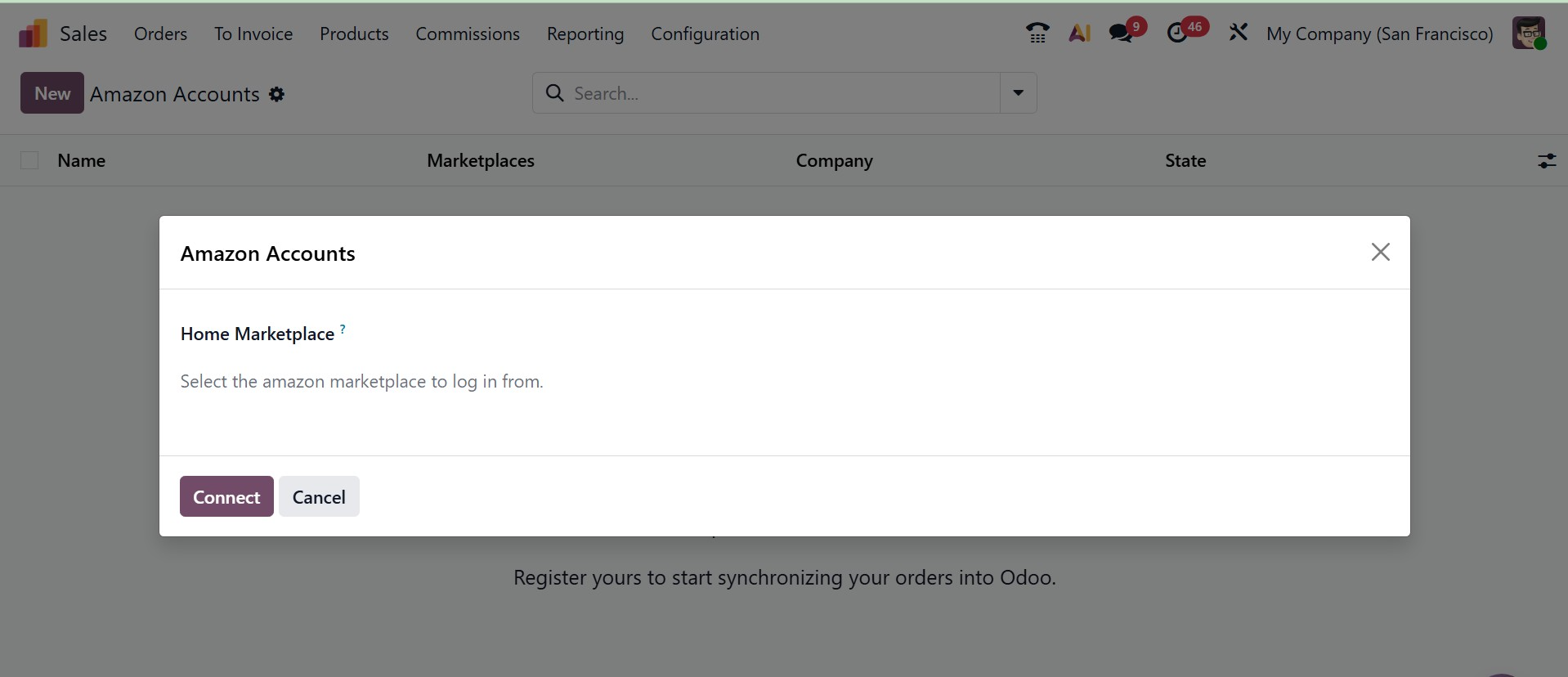 Amazon Seller Central accounts are linked to Amazon accounts. To begin integrating your orders into Odoo, you can register.