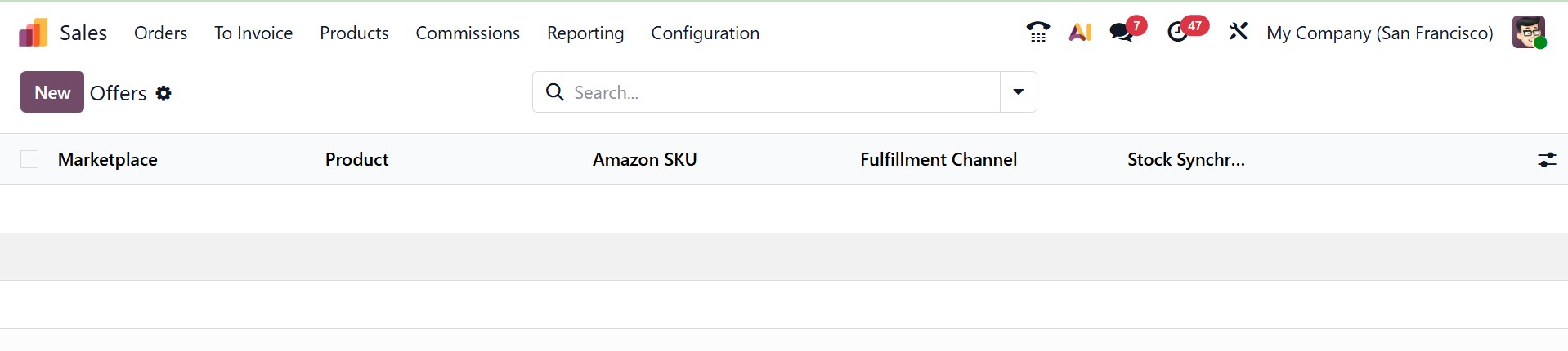 To put it briefly, the Offers option in the Amazon setup of Odoo 19 Sales is used to maintain uniformity in product availability and pricing between Odoo and Amazon.