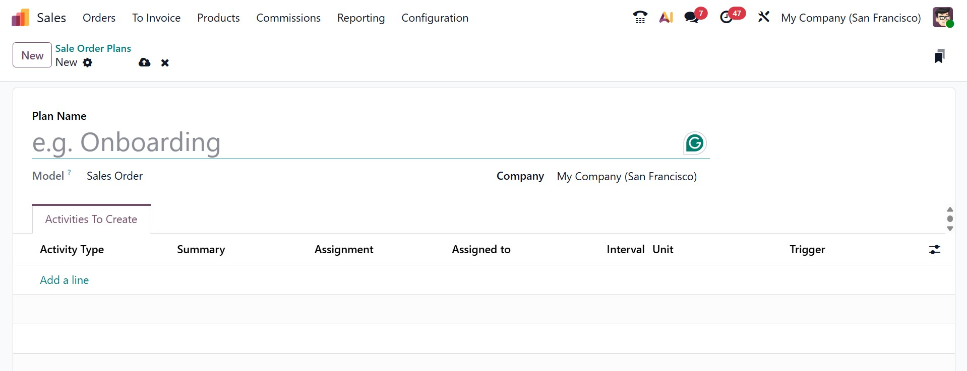 An organized approach to customer contacts is made possible by Odoo Sales' Activity Plans, which let you develop and oversee several activities under a single plan. Businesses that need a set of follow-ups or workflows for managing leads, opportunities, or customers may find this functionality very helpful.