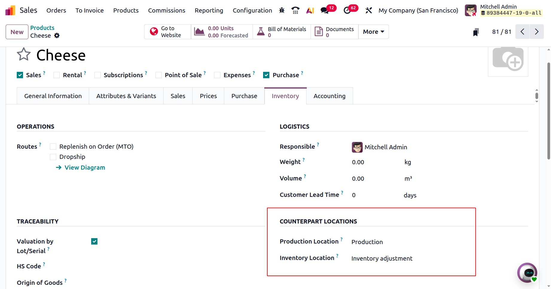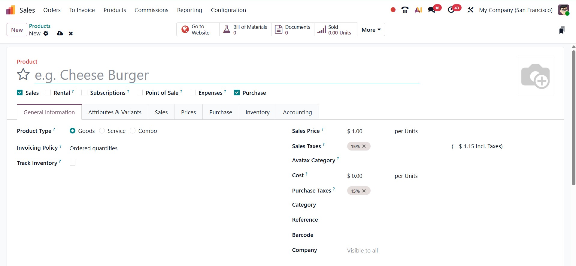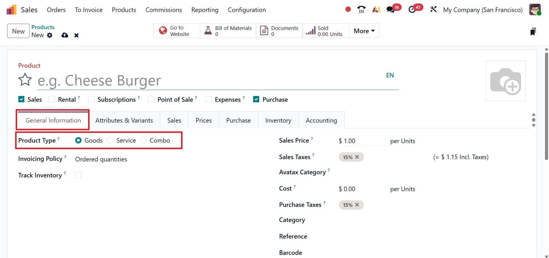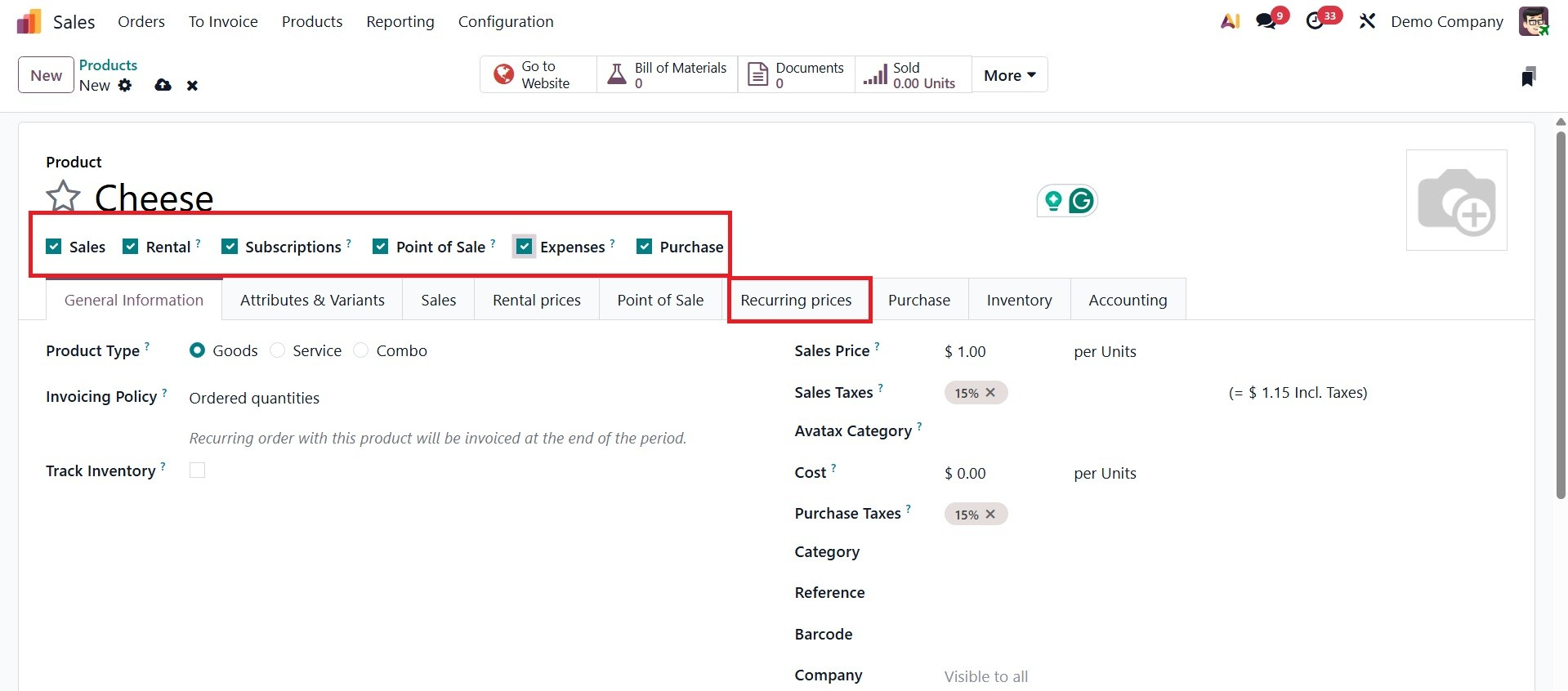 - Sales: Makes it possible to sell the product using the Sales module. It can be included in sales orders and quotations.