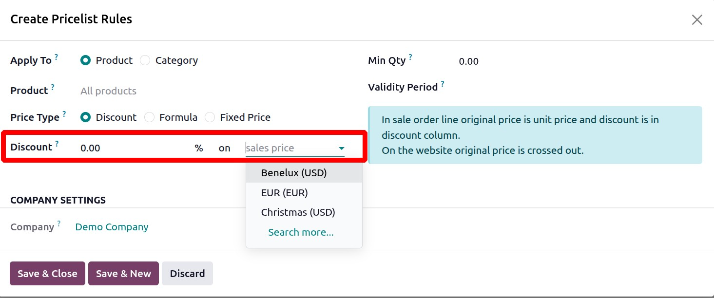 - Minimum Quantity: Indicate how many of the chosen products must be purchased in order for this price list to be applicable.