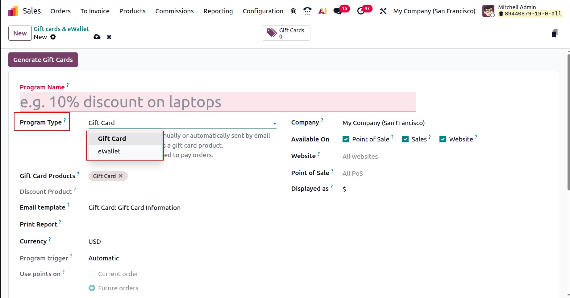 - Program type: two program types available one is Gift card and second one is eWallet.