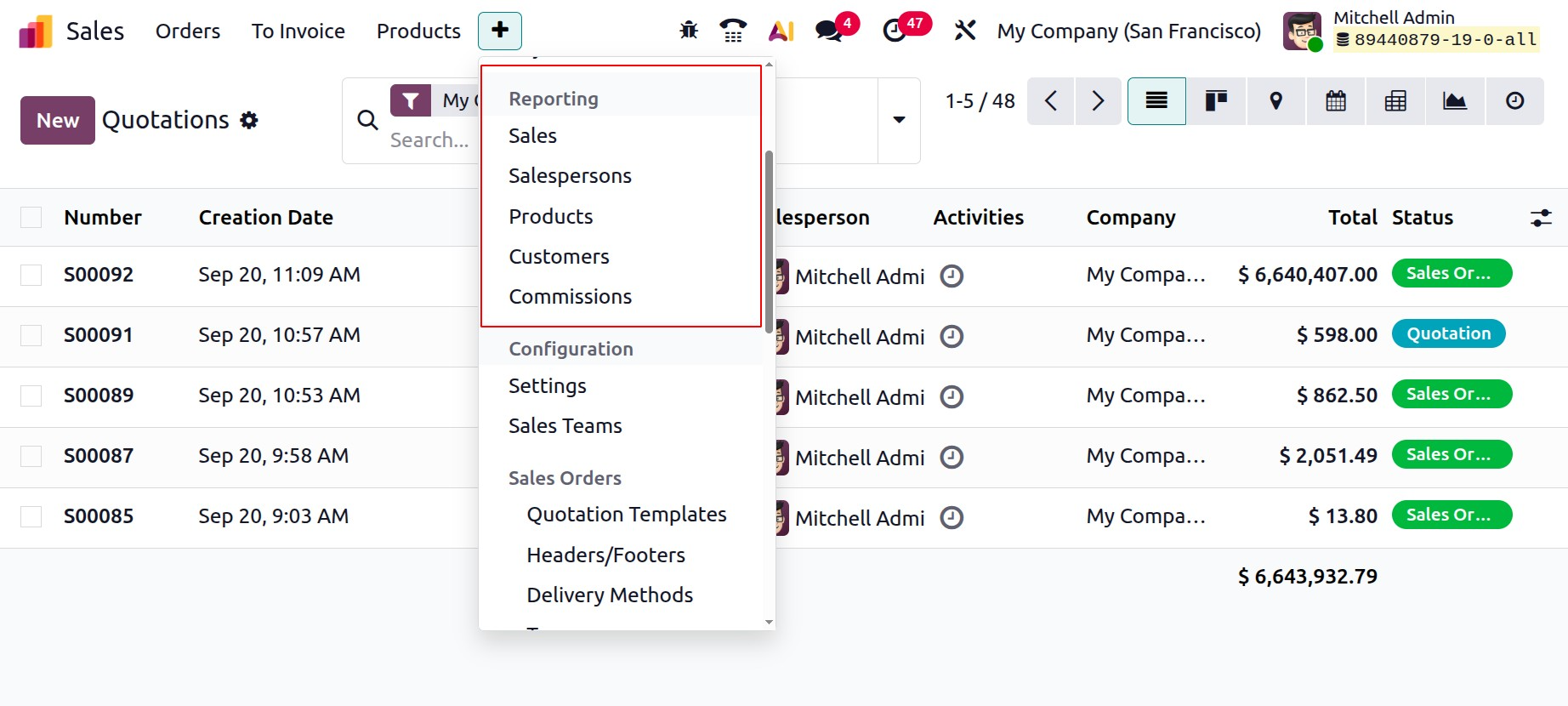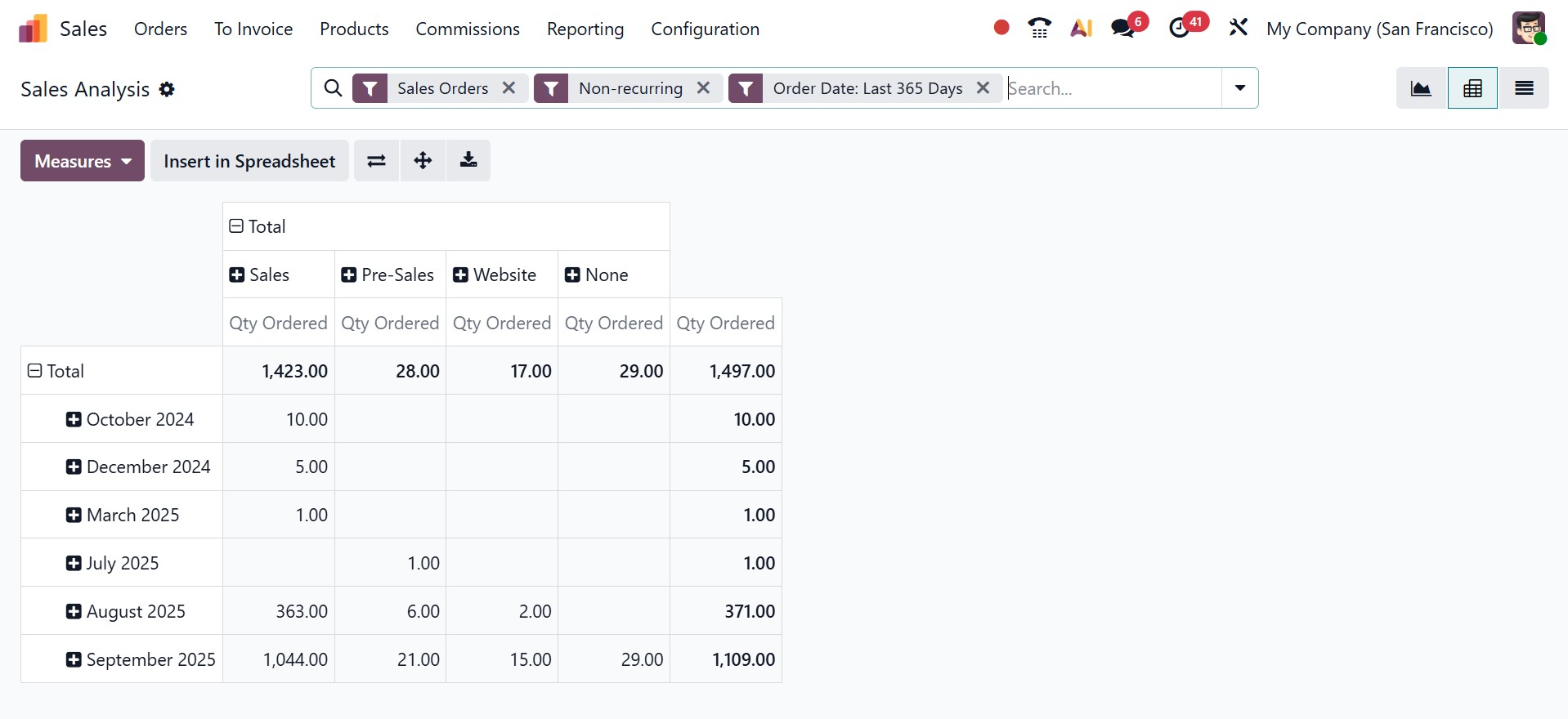 Reviewing sales operations on a regular basis will help you quickly understand your workflow, which will benefit you. An effective sales reporting system will enable you to have a comprehensive idea of the sales management operations conducted in your business. The Odoo 19 ERP system allows you to swiftly generate sales reports.