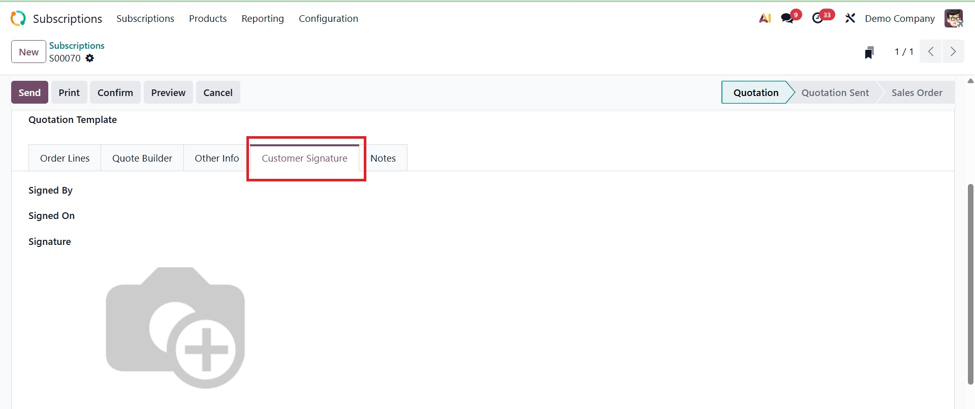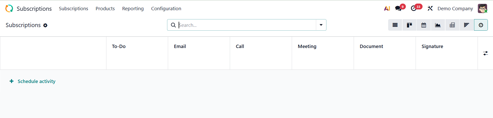 You can create a quotation with subscription products using Odoo Subscriptions. On opening the option, you have the page with pre-configured quotations.