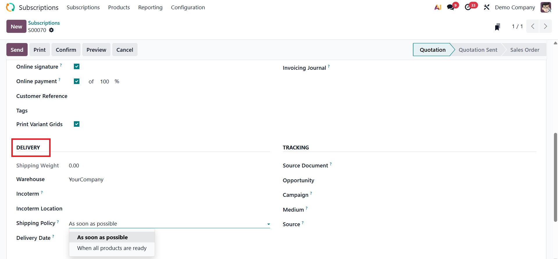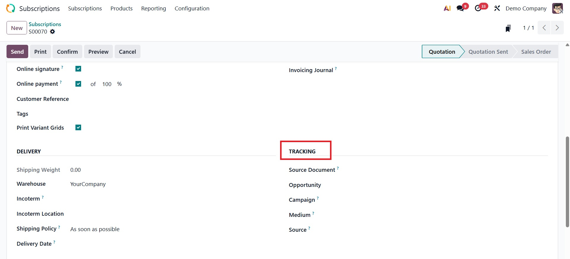 - Quotation date: it is the date when the subscription’s quotation (or offer) is created and sent to the customer.