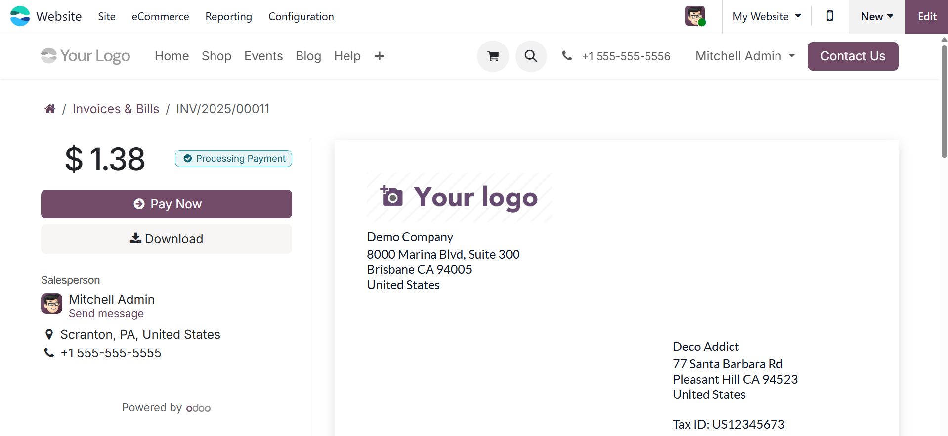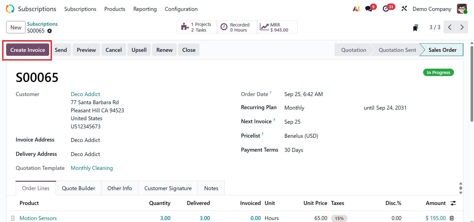 You can now generate an invoice for the sales order by clicking the Create Invoice button.