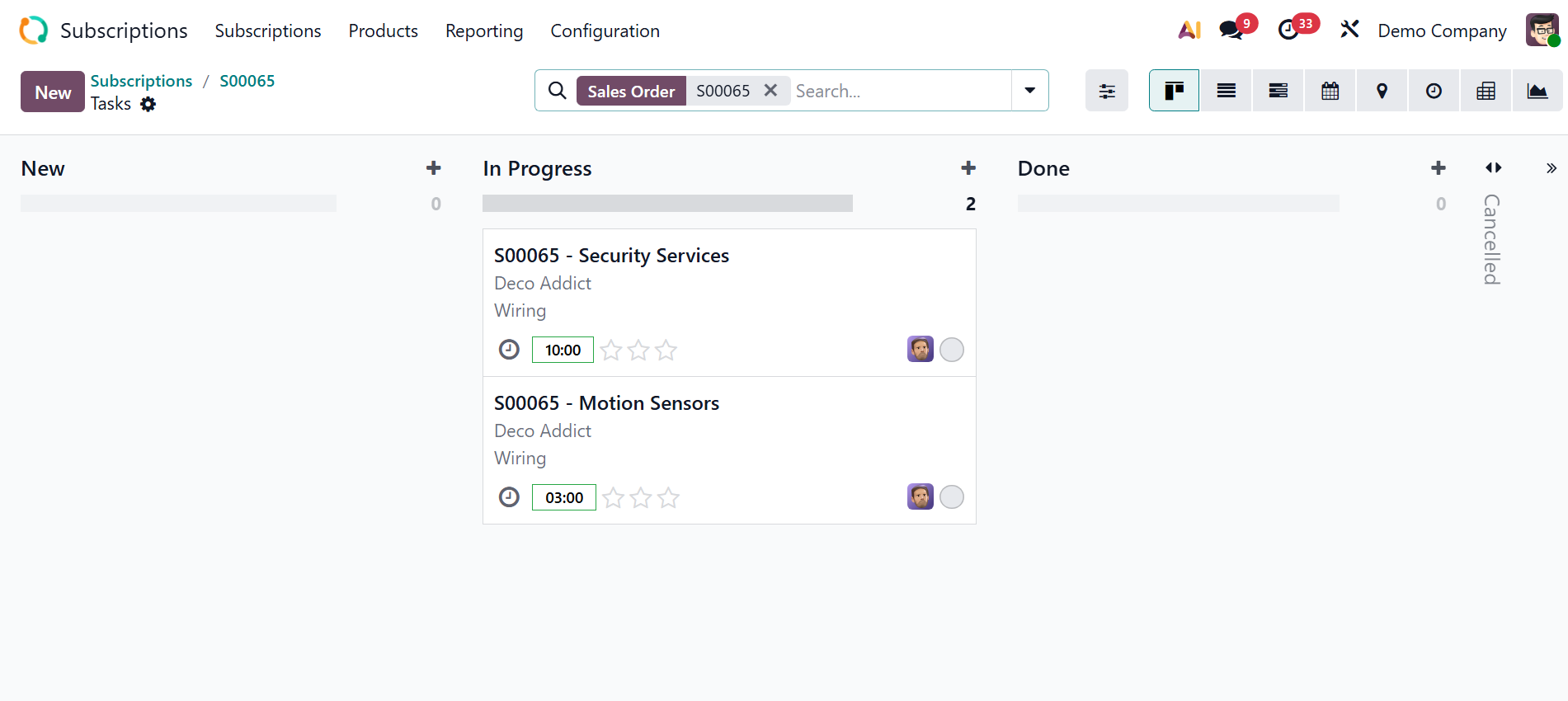 - Project: Associate the subscription with a specific Odoo Project to track related tasks, time, and progress.