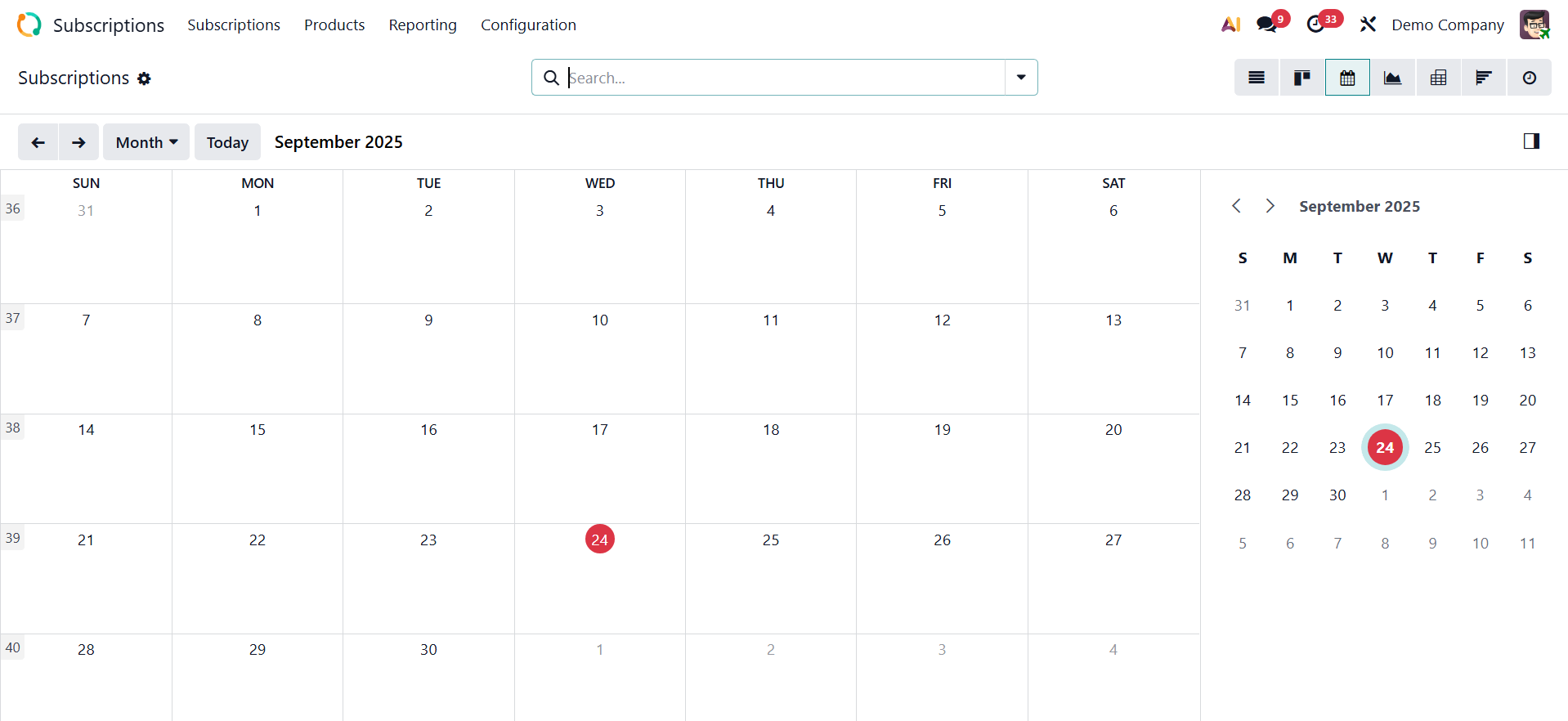 When a customer's subscription expires, they can renew it with the Odoo19 Subscription module. Renew your subscription if you want to keep enjoying the benefits after the expiration date. Odoo19 provides a unique framework for managing subscription renewals in the module. The module's Subscription menu has the option for subscriptions to renew.